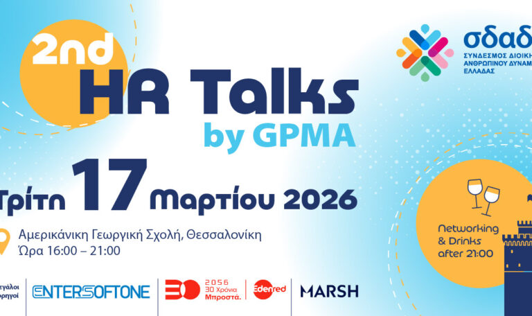 Το 2nd HR Talks by GPMA επιστρέφει στη Θεσσαλονίκη στις 17 Μαρτίου 2026, φέρνοντας κοντά την κοινότητα του HR για μια εμπειρία γνώσης, έμπνευσης και ουσιαστικού networking.