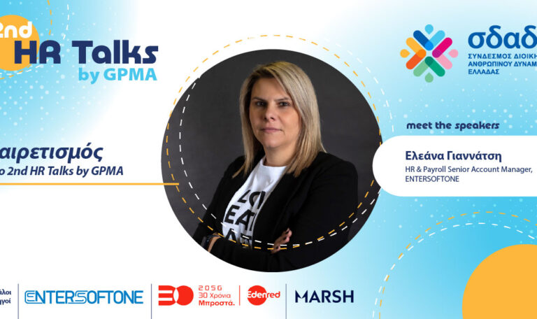 Το 2nd HR Talks by GPMA, που θα πραγματοποιηθεί στις 17 Μαρτίου στη Θεσσαλονίκη, υποδέχεται την Ελεάνα Γιαννάτση, HR & Payroll Senior Account Manager της ENTERSOFTONE, η οποία θα μοιραστεί την εμπειρία της γύρω από τον ψηφιακό μετασχηματισμό του HR και τις σύγχρονες πρακτικές διαχείρισης ανθρώπινου δυναμικού και μισθοδοσίας.