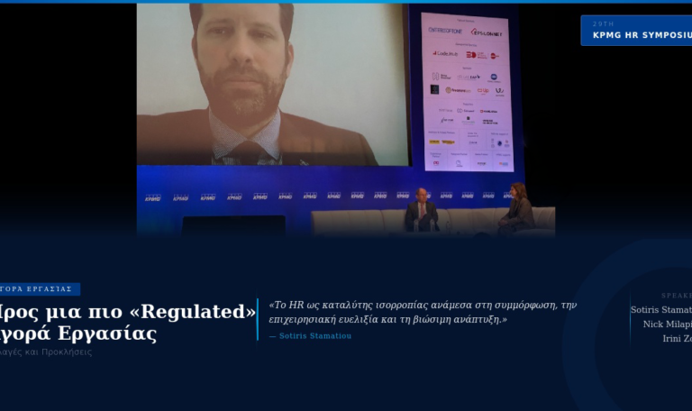Οι αλλαγές στη ρυθμιζόμενη αγορά εργασίας και ο ρόλος του HR αναδείχθηκαν στο discussion panel του 29th HR Symposium της KPMG, με τη συμμετοχή του Σωτήρη Σταματίου, President του ΣΔΑΔΕ.