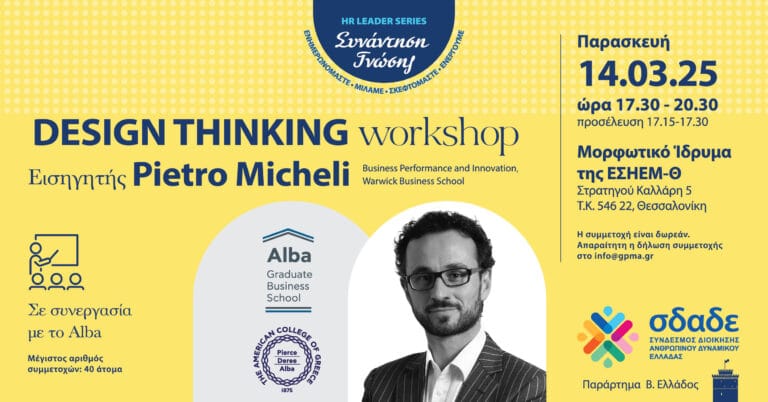 Design Thinking στη Θεσσαλονίκη με τον Καθηγητή Pietro Micheli. Ένα δυναμικό workshop με πρακτικά insights,…