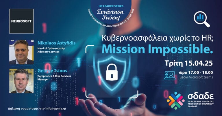 Κυβερνοασφάλεια & HR: Συνεργασία ή Mission Impossible; 15/4 | 17:00 | LeaderSeries για μέλη GPMA.…