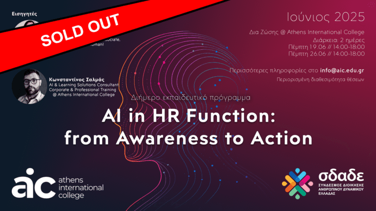 AI in HR Function: From Awareness to Action Εκπαιδευτικό Πρόγραμμα στο AI για HR Επαγγελματίες..