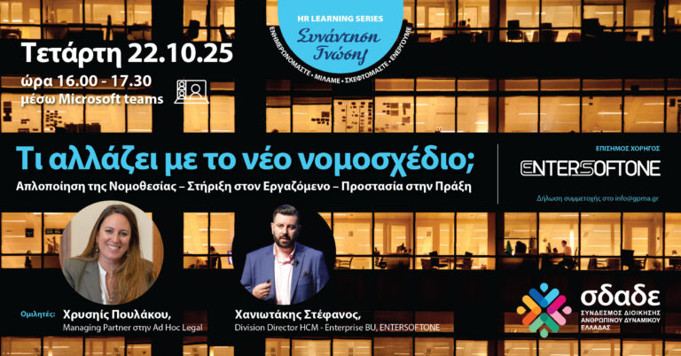 Ο Σύνδεσμος, σε συνεργασία με τον EAPM (Ευρωπαϊκό Σύνδεσμο Ανθρώπινου Δυναμικού), σας προσκαλεί σε ένα…
