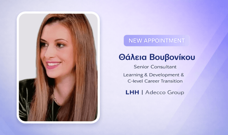Η Θάλεια Βουβονίκου αναλαμβάνει τον ρόλο της Senior Consultant στον τομέα Learning & Development και C-level Career Transition στην LHH του Adecco Group, ενισχύοντας περαιτέρω την παρουσία της εταιρείας σε στρατηγικές υπηρεσίες ανάπτυξης ανθρώπινου δυναμικού.